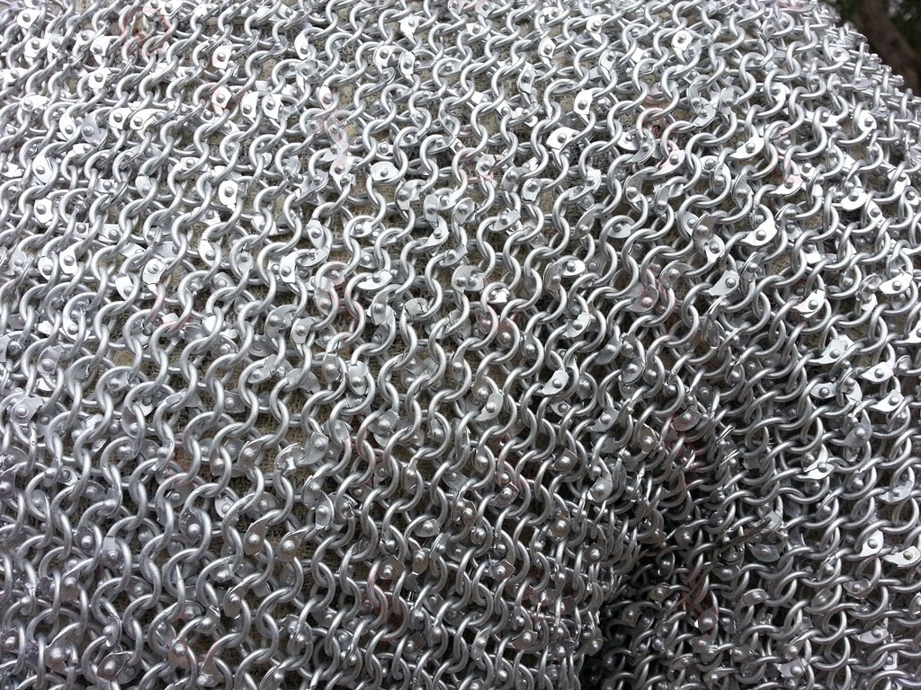 Aluminium chainmail made from 9mm riveted links. Every single link has been hand riveted and unlike other riveted mail this is as durable and lightweight. Aluminum may look very shiny and therefore it is important to have riveted for that authentic look.