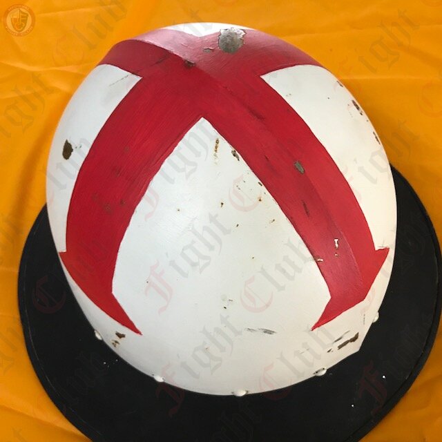 Called by many names, chapel de fer, war hat or kettle hat, the broad brimmed, open face helmet was the most popular of all helmets for fighting on foot. The broad brim shields blows from hand weapons, and offers protection from missiles from above.