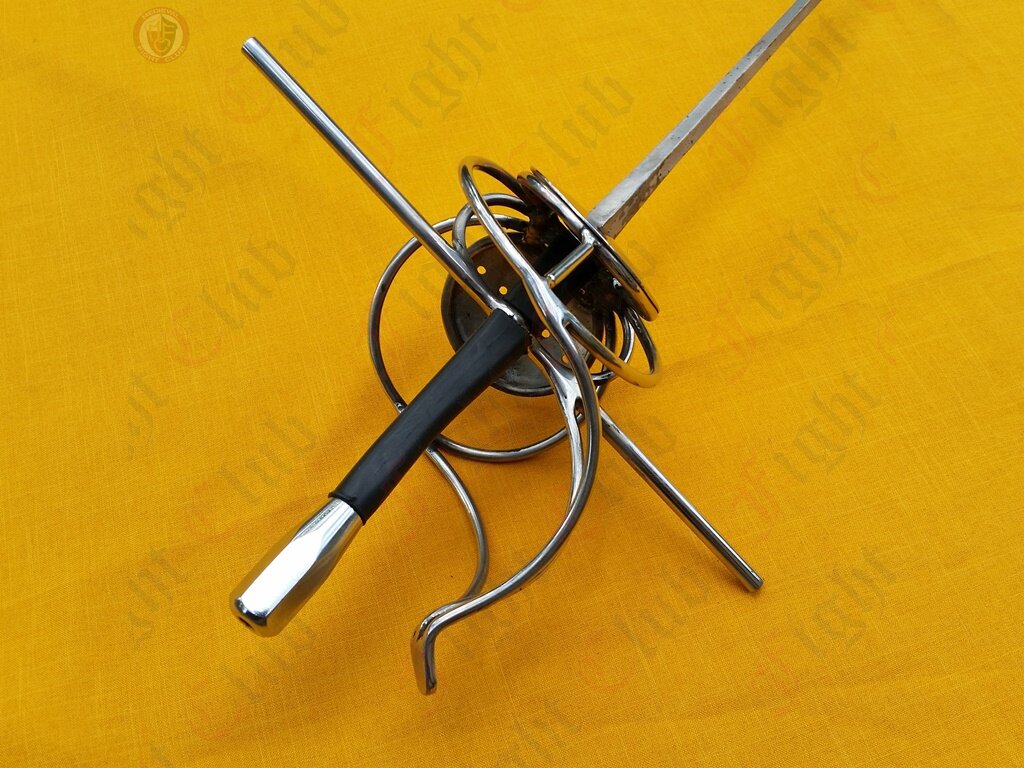 Inspired by the Flemish "Pappenheimer" 1630 rapier, this was designed with the historical fencer and stage production in mind. It is built using a reliable and safe fencing blade and has had a quality Flemish rapier style guard fitted.