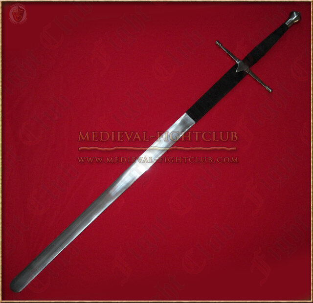 Features broad crossguard and comfortable leather grip with ribbing. Also has a very strong blade and stopper shaped pommel.