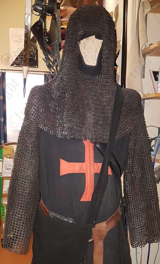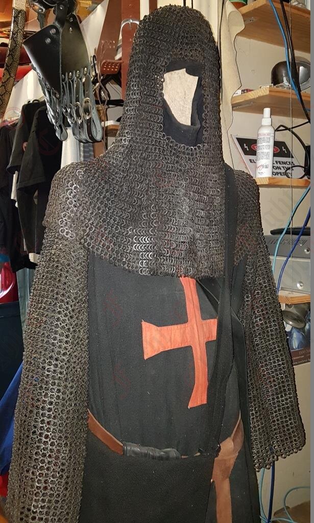 Made from forge blackened rings. This shirt is highly durable. This suit of mail is linked in a 1-4 pattern see large pic for details.