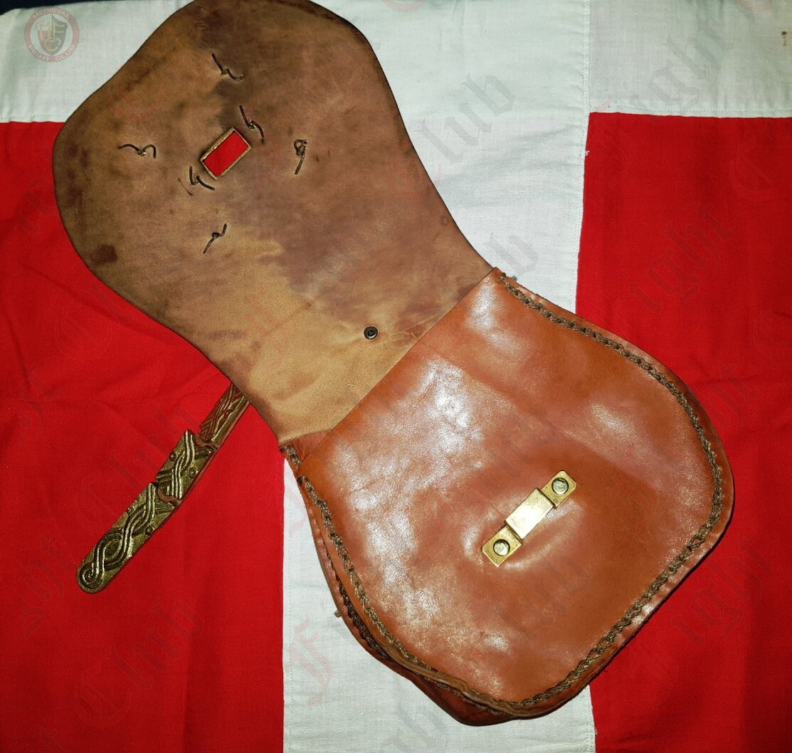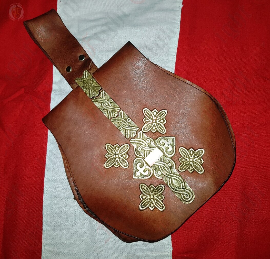 This Rus Viking pouch with solid brass plaques has one large pocket.