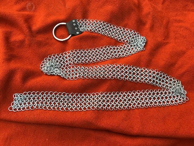 A strip made of aluminium round, butted maille (chain mail to some) that is ready to go and to add character to your fantasy medieval costume. Please note that as far as we know this was not a medieval item and is pure fun.