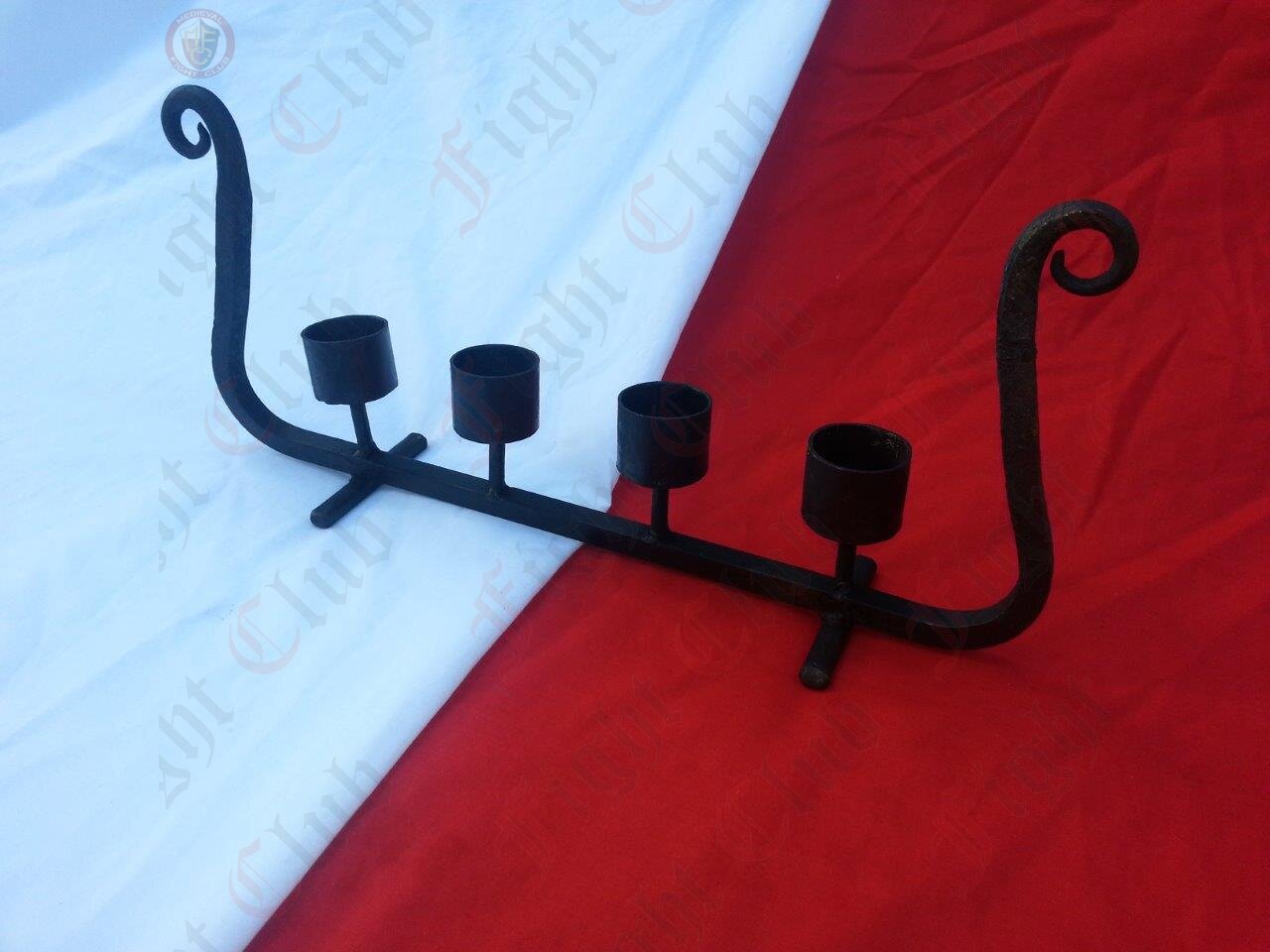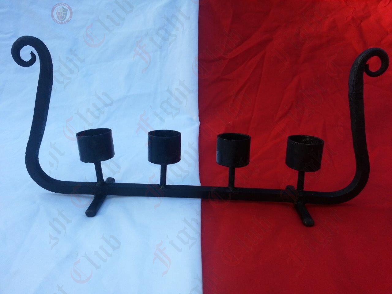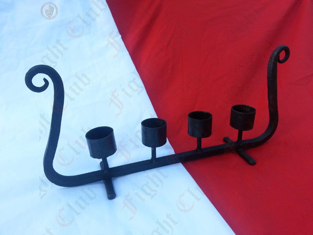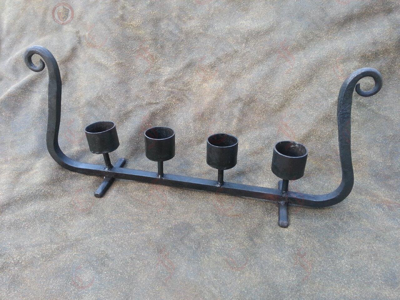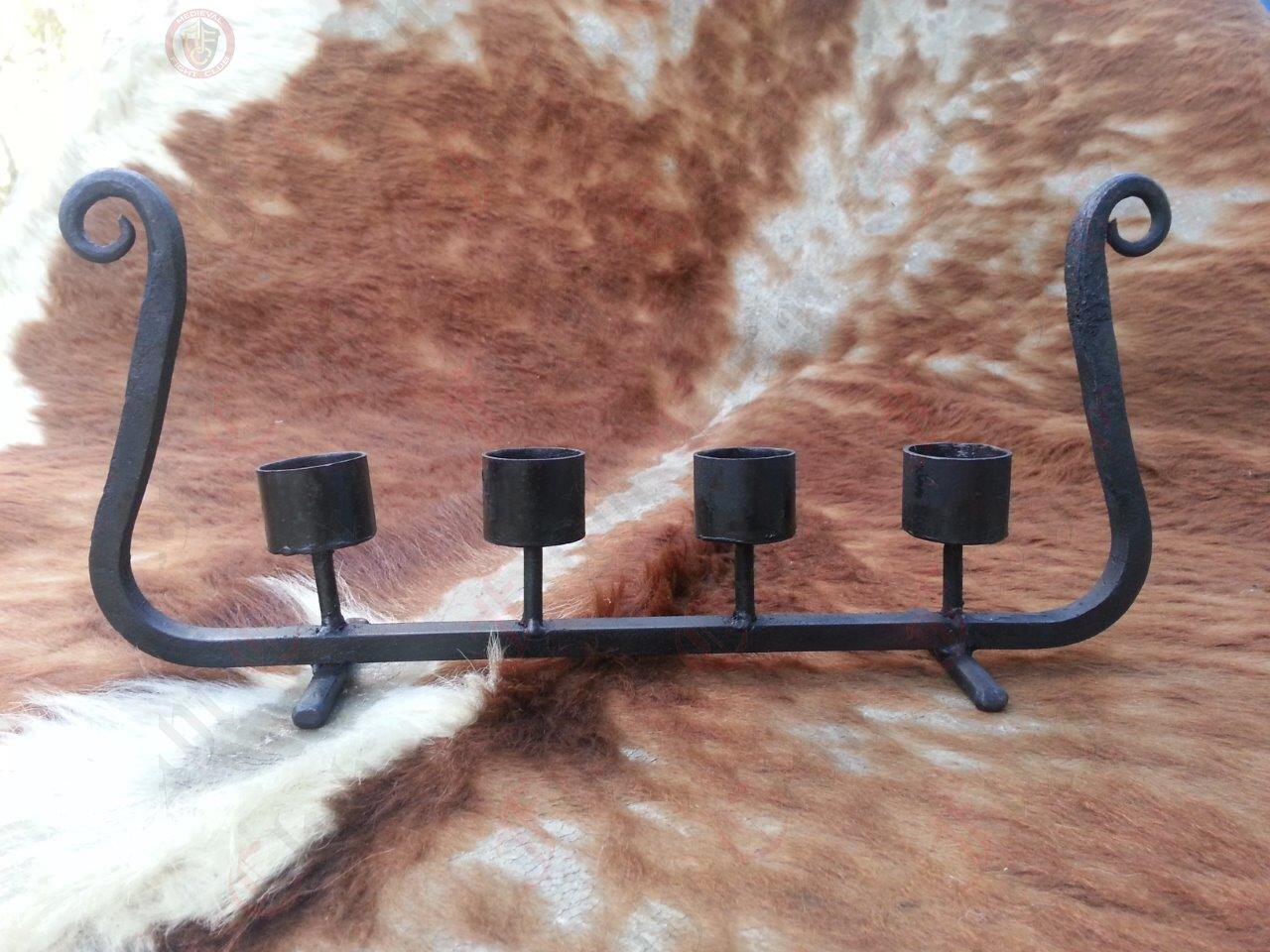 Candle holder formed in wrought iron in the shape of a Viking longboat.